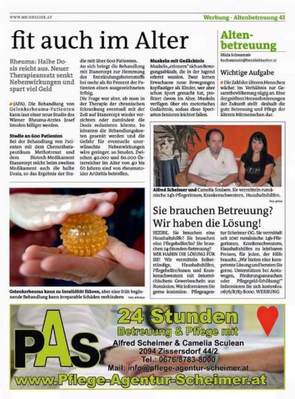 Mit einer Seniorenpflege und Seniorenbetreuung zu Hause, bei der sich Ihre Angehörigen oder Sie sich in besten Händen befinden. Mit einer Haushaltshilfe von Neusiedler See bis Bodensee und andernorts in Österreich. Mit anderen Worten: Die Pflegeagentur-Scheimer vermittelt Ihnen 24 Stunden Pflege und Haushaltsbetreuung in Österreich nach Maß. Ob Altenbetreuung zu Hause, Hauskrankenpflege – beispielsweise auch Demenzbetreuung – oder Haushaltshilfe, die Plegeagentur Scheimer vermittelt Ihnen kompetente, zuverlässige Pflegekräfte und Unterstützung für den Haushalt. Schaffen wir für Ihre Angehören oder für Sie einen sicheren, Geborgenheit spendenden Rahmen.